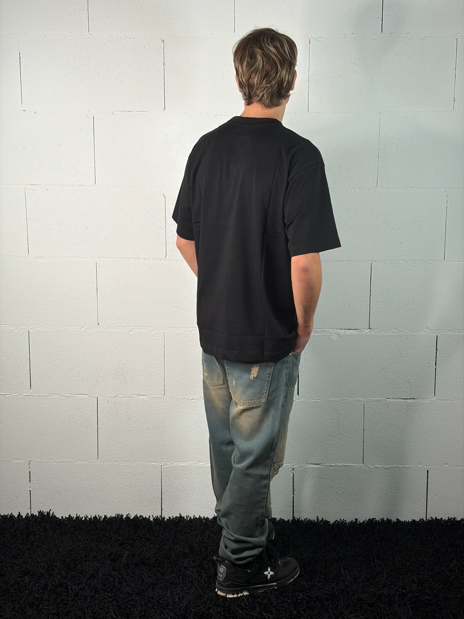Stile audace e grunge per questi jeans dalla vestibilità relaxed fit (comoda). Il lavaggio in denim blu presenta pesanti strappi e un marcato effetto 'sporco'